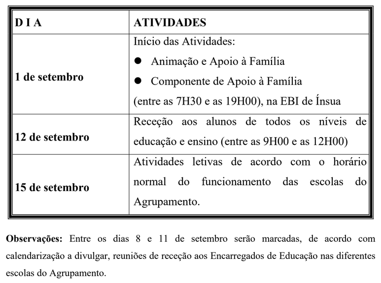 Informa-se toda a comunidade escolar que, de acordo com o estipulado no Despacho Normativo n.° 8368/2024, de 25 de julho, o Agrupamento de Escolas de Penalva do Castelo suspende as suas atividades entre os dias de 18 e 25 de agosto, inclusive.